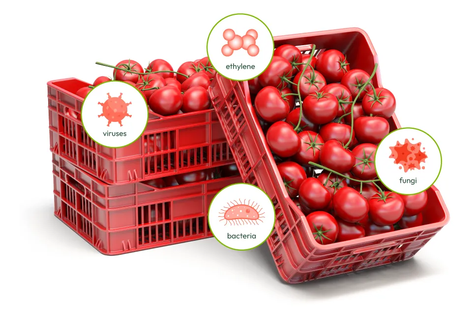 Discover our range of BIOethylen air purification equipment with patented triple-action technology that purifies the environment by eliminating ethylene to delay ripening in fruit and vegetable products. It also features bactericidal action through its UV-C and TiO2 technologies, preventing the spread of bacteria, viruses, spores, yeasts, and protozoa that cause the growth of mold and mildew on fruits, vegetables, and flowers.